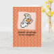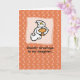 Wish a spooky Halloween to your daughter with this cute ghostly card. It has an image of a smiling ghost holding a pumpkin on an orange and white dotted background. Send this with spooky messages and let her enjoy Halloween.