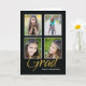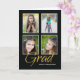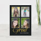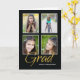 Add 4 photos to this graduation announcement for your daughter. Black background sets off the gold looking word Grad with her name in white. The word grad overlaps the photos to integrate the writing and pictures. Perfect for your daughter, or change the inside text for anyone!