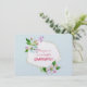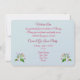 Done up on a blue ackground and beautiful apple blossom elements to decorate and show off this invitation.