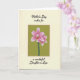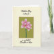 This card features a framed botanical illustration of two pink orchid-like blossoms, painted with soft shading that suggests a tender closeness between them ❤️. The background behind the flowers is a muted lime-green wash that keeps the scene calm and gentle. A thin warm-brown border outlines the central panel, set against creamy card stock that looks smooth and lightly textured. The petals blend fuchsia and blush tones with pale edges, and each bloom has a deeper red-orange center that draws your eye inward. Above the artwork, a flowing line of black text sits centered near the top, and a matching line appears below the frame, balancing the layout. The message reads “Mother’s Day wishes for a wonderful Daughter in Law,” with the words arranged in two neat sections that wrap the floral panel. Soft, diffused lighting makes the pinks feel affectionate and the greens feel restful, like a quiet garden moment 🌼. The two blossoms face slightly toward each other, with crisp white highlights along the petal edges and a slim brown frame separating the green panel from the cream border.