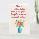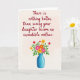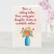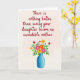 This design shows a tall layout with a loving message at the top, setting a gentle, affectionate tone ❤️. The words read, “There is nothing better than seeing your daughter become an incredible mother,” arranged in several centered lines near the upper third. The lettering is a flowing handwritten style in warm red, standing out clearly against the soft background. Beneath the text, a rounded blue vase sits in the lower half, like it’s offering the message upward. A full bouquet rises from the vase, mixing fuchsia, golden yellow, and orange blooms whose close, cozy clustering feels like a warm family hug. Green leaves fan out behind the flowers, adding depth and a calm, natural contrast 🌼. The backdrop is creamy beige with faint, brushy edging around the borders, and the vase has smooth curved sides with a small base under the dense flowers.