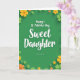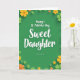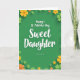 Designed with a rich green background, this St. Patrick’s Day card centers on the line “Happy’s St. Patrick’s Day Sweet Daughter” in white lettering that stands out clearly. The words sit prominently in the middle, with a gentle shadow that makes them look slightly raised against the green. Around the edges, light green shamrocks drift like a soft frame, adding a sweet, affectionate touch 💚. Bright yellow and soft orange four-petal flowers mingle among the clovers, like little gifts scattered around a note to someone you adore ☘️. The lighting is smooth and diffused, creating delicate shading beneath the text and each small decoration. The layout keeps the message easy to read while the border of greenery and blossoms draws your eyes in. Shamrocks and flowers of different sizes float across the green field, with warm yellow and orange accents punctuating the corners and sides.