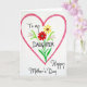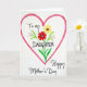 A heartfelt greeting card features a large red heart drawn with textured, crayon-like strokes, filling most of the page and setting a cozy, affectionate tone ❤️. Inside the heart sits a small bouquet of simple flowers, arranged close together as if they’re being held with care between close family members. A red flower with a white star-shaped center stands out in the middle, paired with a sunny yellow daisy-like bloom and two slim white flowers with tiny brown stamens for contrast 🌼. Near the upper left area inside the heart, the words “To my” appear in black, flowing lettering, leading into “DAUGHTER” in black uppercase letters that sit more prominently. Beneath the bouquet and just outside the lower curve of the heart, “Happy Mother’s Day” is written in black, flowing lettering that gently follows the open space. The white background stays uncluttered so the red heart and bright flowers feel like they’re leaning toward each other in a warm, friendly embrace. The heart’s red outline looks slightly uneven and textured, with visible stroke lines around the edges.