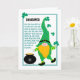 A fun greeting card for your daughter on St. Patrick's Day, with a cute dancing leprechaun, holding a shamrock, beside a pot of gold. There is a dark green, double-lined border and the original Celtic Prayer, in green lettering, beside the leprechaun. The leprechaun has a very tall hat, in a green pattern, a big ginger beard, a huge nose, striped sleeves and socks and black shoes with buckles to match his hatband. At the top, in black lettering, is the word 'DAUGHTER' and the inside message is easy to customize or delete.