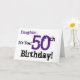 A white background featuring black and purple text, on this fun, birthday greeting for a daughter. My Funny Mind Greetings.