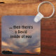 'If there's a Goliath in front of you, then there's a David inside of you' inspirational quote across both front and back of the keychain with sunset images.