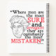 A notebook featuring the face of the famous philosopher David Hume and a quote from him "When men are most sure and arrogant they are commonly most mistaken."