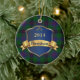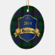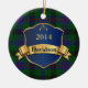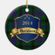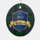 Colorful plaid ceramic ornament, with the traditional blue, green, red and black clan Davidson tartan plaid pattern, as a background. Graphics of a blue and gold tone shield like plaque, has custom blue and golden yellow text ready to personalize. Great looking family heirloom ornament. Makes a great gift ornament and decoration for other uses around the house.