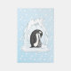 Glaciers and ice surround Annie the paisley emperor penguin as she cuddles up with her dad, Davin, to stay warm in the cold Antarctic snow and ice. This sweet and chilly scene is a great way to bring some cute penguins into your life.