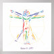 Our own version of Leonardo DaVinci's classic, world famous illustration of human anatomy, called Vitruvian Man, looks great in the colors of the 7 main chakras! From root chakra to crown chakra, this is perfect for your massage room, reiki customers, or yoga students. From Wikipedia: the length of the outspread arms is equal to the height of a man from the hairline to the bottom of the chin is one-tenth of the height of a man from below the chin to the top of the head is one-eighth of the height of a man from above the chest to the top of the head is one-sixth of the height of a man from above the chest to the hairline is one-seventh of the height of a man the maximum width of the shoulders is a quarter of the height of a man.