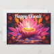 This exquisite Diwali card radiates warmth and celebration. At its center blooms a majestic lotus in hues of fuchsia, saffron, and violet—cradling a softly glowing candle that symbolizes spiritual light and festive joy. The background is an abstract swirl of deep sunset tones and electric purples, lending a dreamy, magical energy to the design.