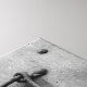 Closeup view of a vintage white wall and metal storm shutter in open position. The night hook is loose and hang freely, the day hook is fixed in the eye on the wall. Black and white image, the allegory of day and night.