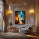 Experience the passage of time in a mesmerizing stained glass-style artwork. This stunning mosaic composition blends the contrast of day and night, warmth and cold, through a symbolic clock merging into a surreal landscape. The vibrant golden hues and deep blues create a luminous balance of light and shadow, making this piece perfect for those who appreciate conceptual art infused with the brilliance and elegance of stained glass aesthetics.