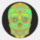 I drew this heavily patterned Day of the Dead skull, and then colored it in a variety of ways. Hopefully there will be one that really appeals to you. This one uses a lot of acid greens and blues.