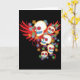 Sugar skulls, wings, flowers and swirls asymmetrical design. Awesome Dia de los Muertos card.
