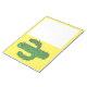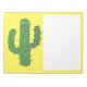 This awesome notepad features a digital art image of a cute green cactus covered in dark green spiky prickles. The cactus has goofy eyes and a smile on its face.