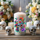 La vela "En Memoria Eterna" para el "Día de los Fieles Difuntos" presenta una imagen central conmovedora: una hermosa calavera rodeada de flores. Este diseño simboliza la celebración de la vida a través de la memoria, fusionando la belleza efímera de las flores con la eternidad de la tradición. Encender esta vela es un gesto de respeto y amor hacia aquellos que han partido, recordándoles con cariño y honrando su legado en esta festividad tan especial.