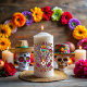 The "Shining Memories" candle for "All Souls' Day" features a primitivist-style skull design adorned with elaborate arabesques and surrounded by flowers. This design evokes the simplicity and beauty of ancient traditions that celebrate the life and memory of our loved ones. By lighting this candle, we honor those who are no longer with us and offer them our light and love, keeping their presence alive in our hearts and on this significant holiday.