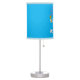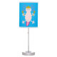This awesome Table Lamp features a digital art image of a cute axolotl, a Mexican Salamander, wearing a sombrero and shaking maracas. The axolotl is pale pink with bright pink feathery gills and a bright pink tail. It has huge eyes and a smile on its face. The sombrero is yellow with a green cactus in the middle. The cactus is surrounded by chilies and Mexican sunflowers, also called Tithonia. The Maracas are yellow with red and green flowers and wavy lines on them.