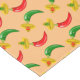 This awesome patterned tablecloth features a pair of chilis, a red chili and a green chili. They both have black eyes and pink mouths. Each Chili is wearing a sombrero hat that has a skull of the opposite color to the chili on it in celebration of the Mexican Day of the Dead festival, Dia De Los Muertos. The sombrero also contains three flowers with alternating red and green petals representing the flag of Mexico.