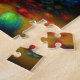 The final product looks great, bright, bold colors, and identical to website photo. I would give it a five but for the fact that the pieces fit very loose making it difficult to move pieces around. Also some pieces can fit perfectly in different locations. You have no idea that a piece is misplaced until an adjacent piece won't fit or does not exist. That does make the puzzle more difficult to put together. Once it was glued together with puzzle glue it was really nice. The custom printing was perfect. It perfectly matched the photo that you see online when ordering.