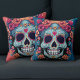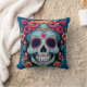 Day of the Dead or Halloween Blue Sugar Skull Throw Pillow