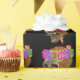 Halloween or Day of the Dead gift wrap with a colorful skull . Black background