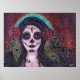 Day of the dead poster with peacock feathers