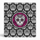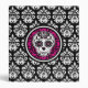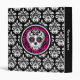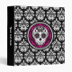 A cute binder with a white and black damask pattern on it and in the center is a girly Day of the Dead sugar skull design in colors of hot pink, black, and white. Personalize the spine with your name or text.