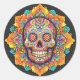 A vibrant and intricate image featuring a traditional Mexican sugar skull, adorned with colorful flowers and intricate patterns. Perfect for Dia de los Muertos celebrations or for adding a touch of Mexican culture to your space.