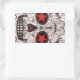 Day of the Dead Sugar Skull - Red & Black Fractal Rectangular Sticker