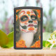 Light your Día de Muertos candles with a lighter featuring a reverent woman in sugar skull makeup. She gazes up surrounded by traditional marigolds wth a serene expression.