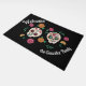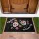 Day of the Dead Sugar Skulls and Flowers Black Doormat