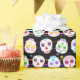 Festively decorated Mexican sugar skulls pattern on roll gift wrapping paper for celebrating Day of the Dead. These cute and colorful skulls will add a touch of spookiness to this traditional holiday. Wrap a Dia de los Muertos gift or use for decorating.