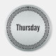 Metallic look circle graphic for daily organization reminders for home or office. This organizing magnet is for Thursday.