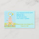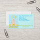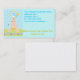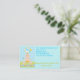Daycare business card, with a image of a baby holding a bottle on a blue polka dot background. It has text saying, where tiniest tot learns a lot. There is a circle for your logo and on the other side is room for all your business information. Everything can be customized to your business.