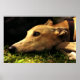 Fawn-colored greyhound, dreaming of a new home. Shot at adoption event.