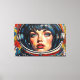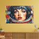 Otis Porritt's digital artwork presents a striking close-up of a woman's face, framed within the reflective visor of an astronaut's helmet. Her intense blue eyes, adorned with long lashes, and delicate freckles draw the viewer in, contrasted by vibrant red lips. The piece is rendered with bold, expressive strokes that mimic a rich impasto texture, creating a dynamic visual surface. A vivid palette of deep blues, bright yellows, and fiery reds dominates, with a playful polka-dot pattern animating the background, enhancing the work's energetic and captivating presence.