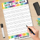 In the need of school supplies for back to school? Help your child learn to write their days of the week with this reusable lined dry erase board for kids with colored pencil background. Great educational material for homeschool or early elementary school aged children. Personalize it by adding you child's name. Perfect for pre-k and kindergarten learning.