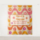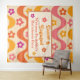 This is custom groovy retro floral bachelorette party tapestry featuring with very cute retro flowers on abstract groovy waves in pink , orange ,yellow and purple. you can change the details and make it yours by using personalize template.