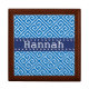 Dazzling Blue White Greek Key Pattern Blue Name Keepsake Box