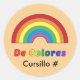 Original illustration of a rainbow and the text stating "De Colores". Space is provided for personalization - church name or Cursillo number.