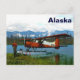 A bush pilot stands near his de Havilland Canada DHC-2 Beaver floatplane on the shore of a lake in the far north; mountains and trees are in the distance. Text reading "Alaska" also appears. This image was derived, in part, from a US Fish and Wildlife Service photo.