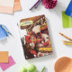 I was super excited when I got my cover in. It is attached by a magnet across the edge. I don’t think it will be very protective but it is very cute. I’m going to keep my iPad in a sleeve and use this face cover while I have it out. It folds to create a tilt for better viewing and to keep the iPad at a slight angle for typing. The colors are bright and it is fun. I’ve really enjoyed it. The personalization looks like amazing. It is the same color as the picture and is the same brightness. Well done! Very nice.