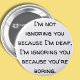 Sometimes being deaf can be a bonus - i'm deaf in one ear, but can hear somewhat from the other ear, I do sometimes give up trying to listen or lipread if the person in question is boring! I'm sure everyone can empathize with this.