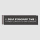 The black car magnet has a white outline of a sun and a moon on opposite sides. The white text in the middle says, "Deaf Standard Time: It takes longer to say goodbye."