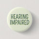 Let others know your medical needs with this simple deafness badge by JessicaAmber. This customisable button features the slogan 'Hearing Impaired' in a narrow font, on a pale green background. You can edit the text and colors as needed. ⭐ For more cool medical badges, visit my store Zazzle.com/Elder_Vitality ⭐ For custom orders, message me on Zazzle