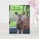 This funny birthday card shows a very clean, fluffy, and fuzzy young doe after the hard rains we had recently in California. The birthday message on this card says, "Okay, let's make a DEAL! I won't eat your pretty roses or your yummy vegetables IF you'll share your cake with me. DEAL? Happy Birthday." Gardeners and wildlife lovers will especially love this card.