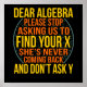 Dear Algebra Math Teacher Mathematics Maths Poster