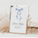 Create a heartwarming touch at your baby shower with our "Dear Baby" advice table sign. This modern design features a charming blue bow, adding a touch of elegance to your celebration. Invite your guests to share their wisdom, love, and blessings for the little one, creating a treasured keepsake that the baby will cherish for years to come. Perfect for any baby shower theme, this sign is a delightful way to capture the joy and anticipation of welcoming a new life.